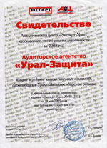 Свидетельство Аналитического центра «Эксперт-Урал»